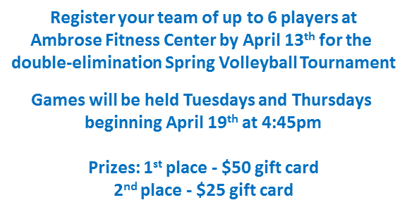 Contact Ambrose Fitness Center at (804)633-8219 by April 13th to register your team of up to 6 players.